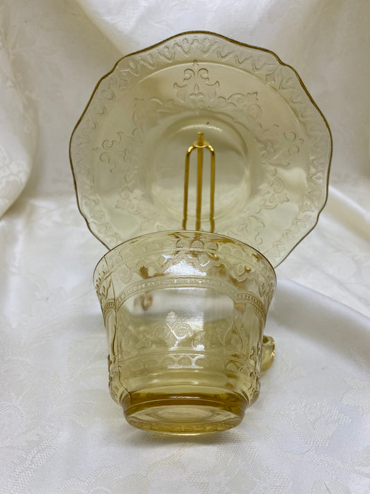 Amber Patrician Spoke by Federal Glass Cup & Sacuer