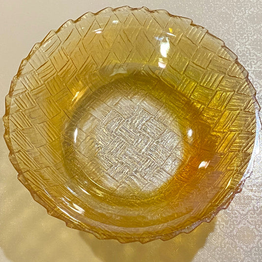 Marigold Carnival Basket Weave Glass Bowl