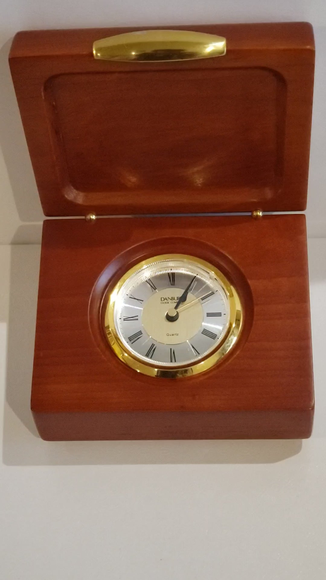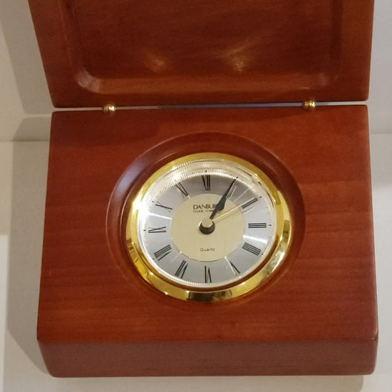 Crafted from luxurious mahogany wood, this Danbury Desk Clock adds a touch of elegance to any workspace. Its intricate gold trim details exude sophistication, making it the perfect addition to your executive office. Keep time in style with this timeless desk clock.
