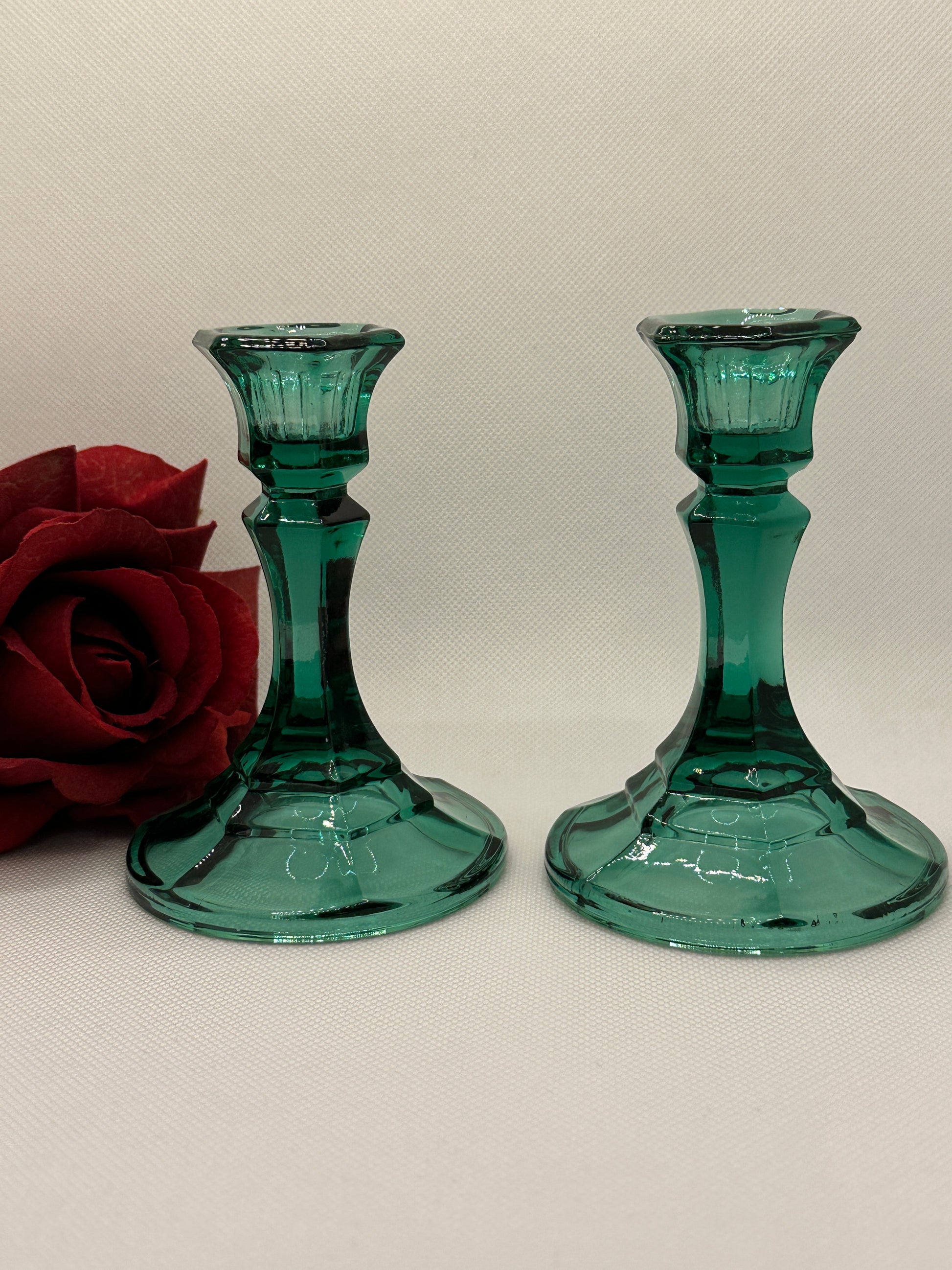 Indiana Glass Co. Teal Green Candle Holders