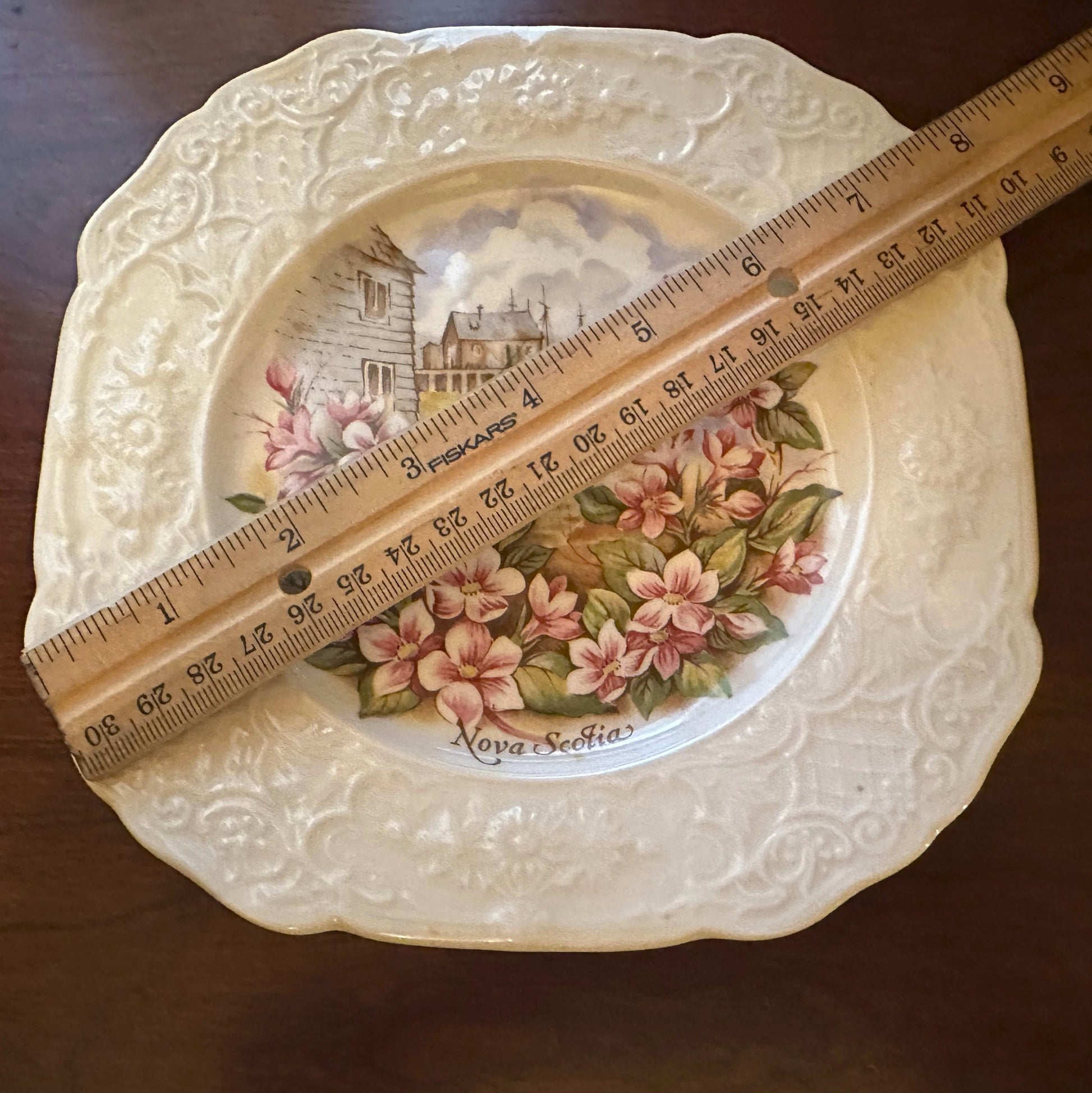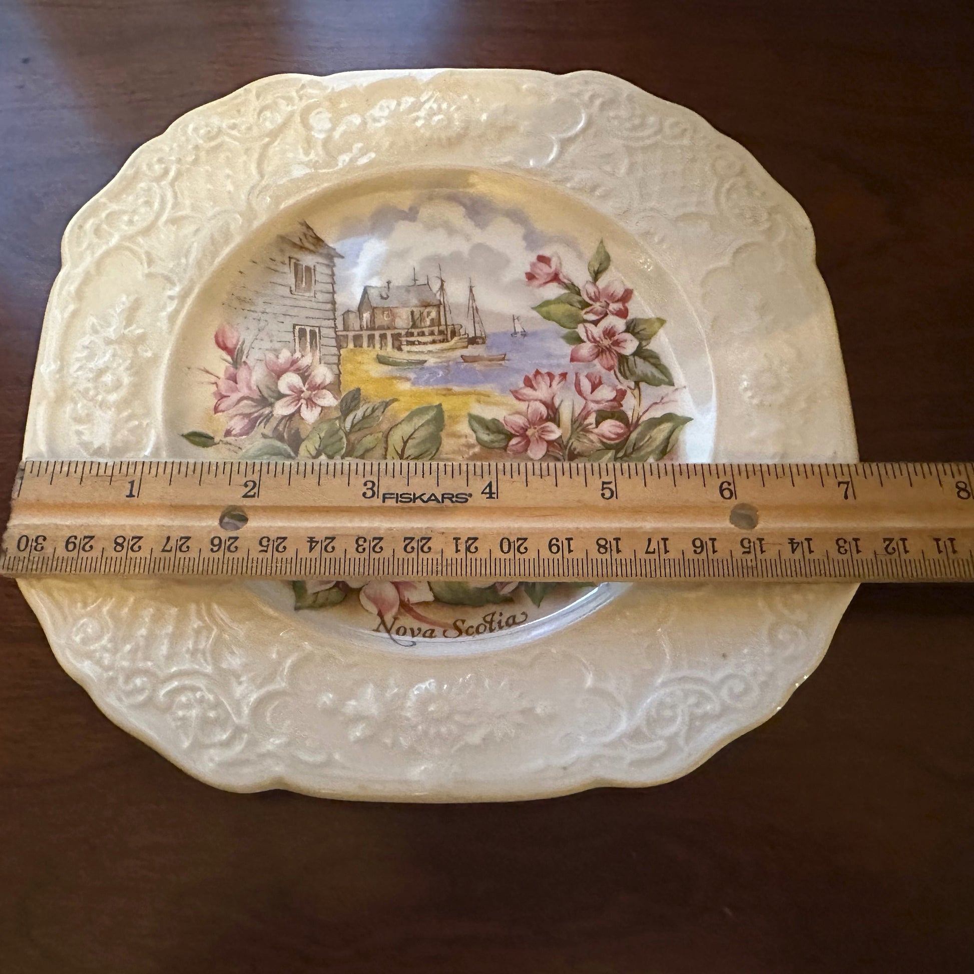 This exquisite Nova Scotia China plate with Seaside Pink Flowers, and Boat Water Scene by Heron Cross Pottery from England is a must-have for any collector. Featuring intricate designs and high-quality craftsmanship, it is a stunning addition to any collection.