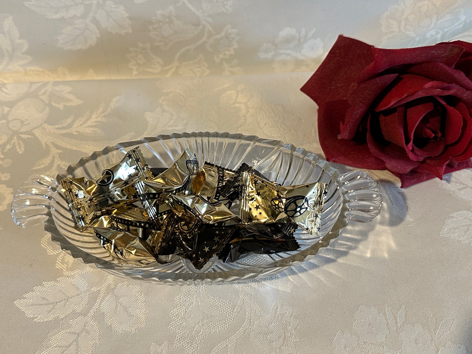 This vintage Hazel Atlas Glass Line 573 Clear dish, was designed in a triangle pattern. The clear pressed glass boasts exceptional quality, adding a touch of elegance to any table setting.
