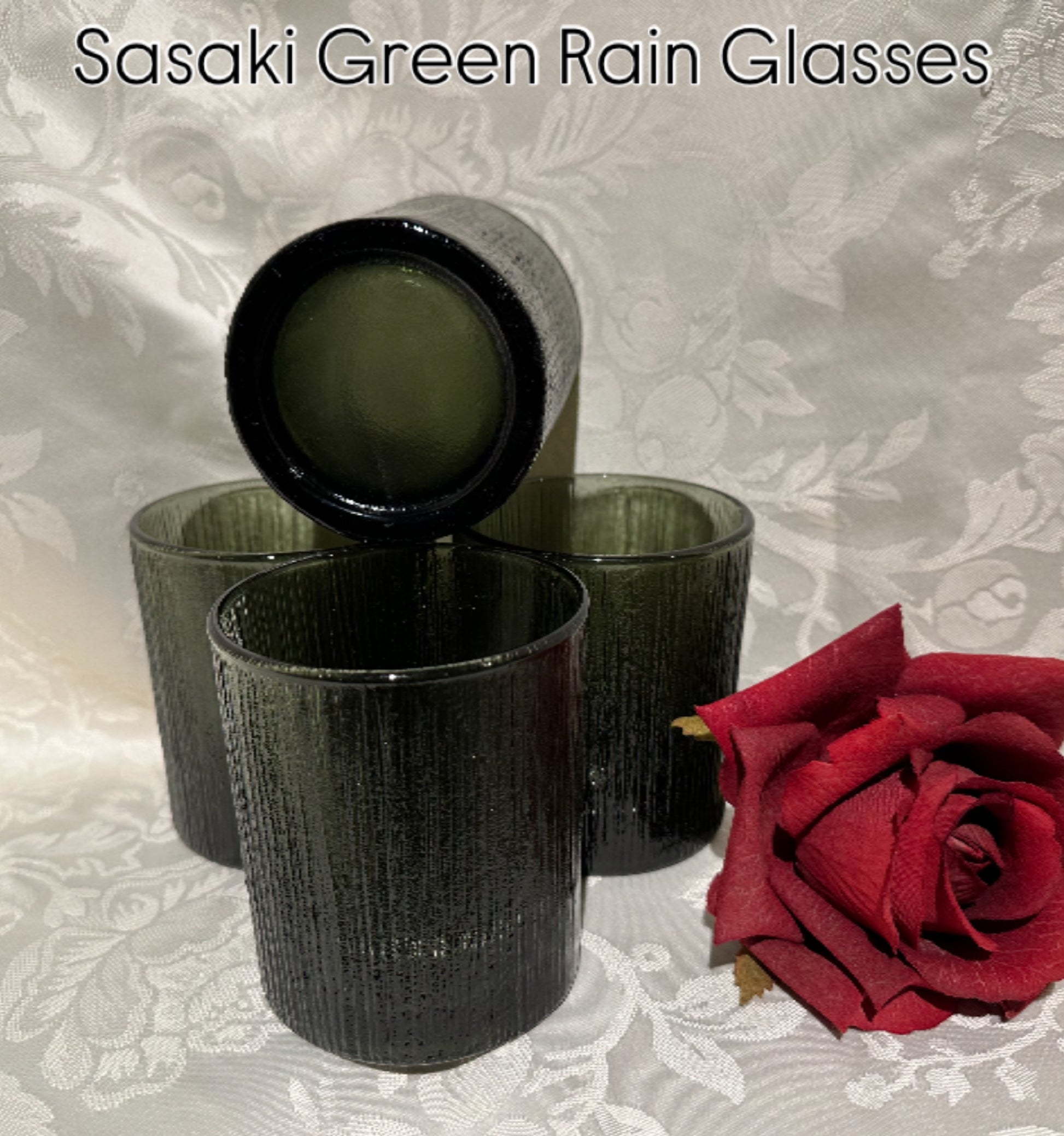 Four Sasaki Green Rain Glass Tumblers, Made in Japan.