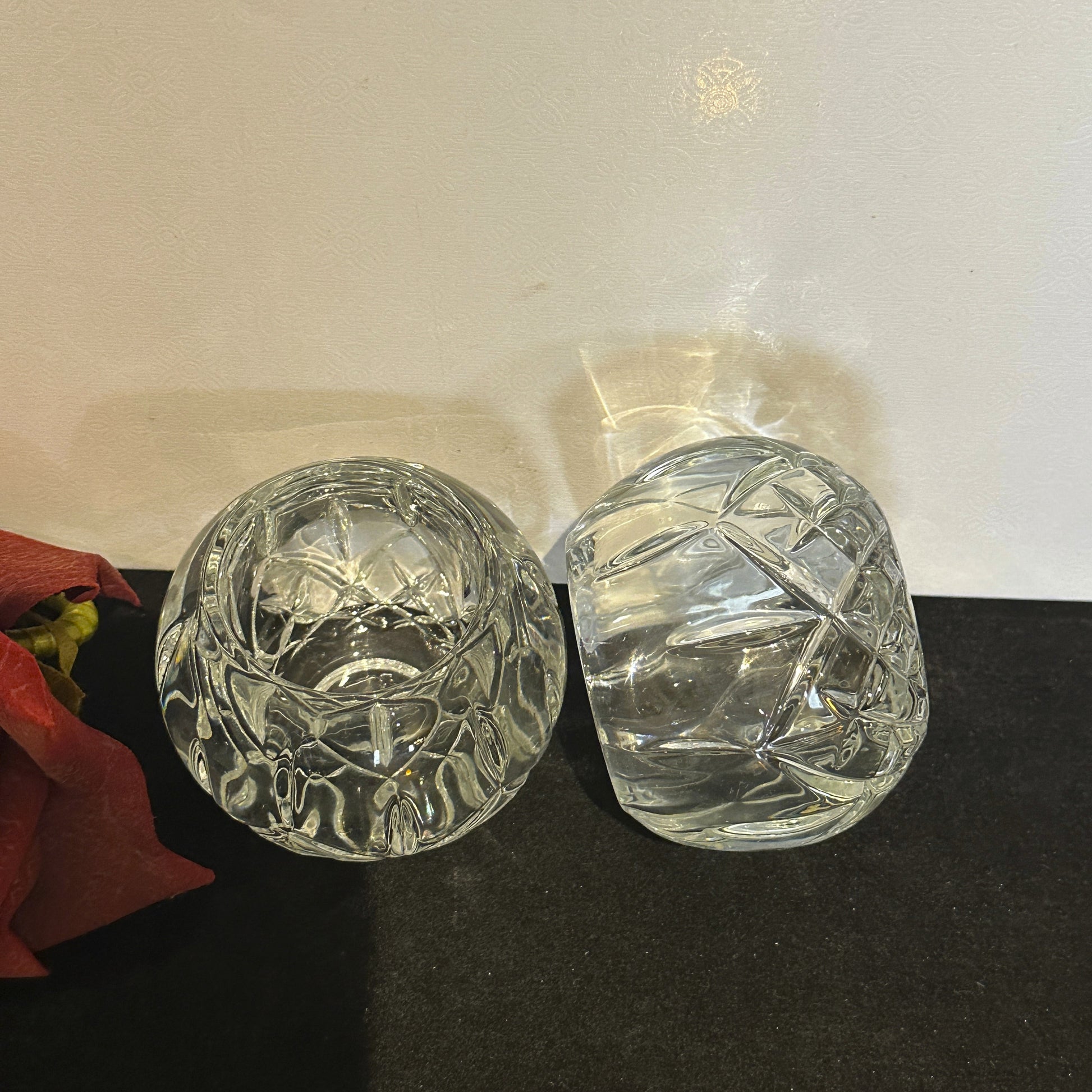 Vintage Pair Homco Heavy Crystal 2.5" Tea Light Round Candle Holders